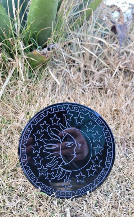 Eclipse * Black Mexican Obsidian Mirror 4" 6" inches * Sun/Moon Hand Carved * Scrying Mirror * Spiritual Protection * Shaman * Divinational